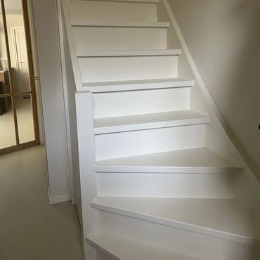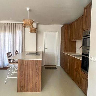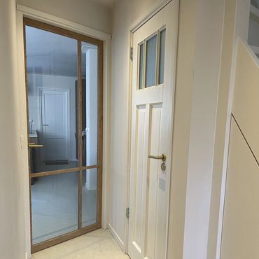 Dit grootschalige project van de kluswoning uit de jaren '50 omvatte diverse werkzaamheden, waaronder: sloopwerk, elektrawerk, uitbouw van de woonkamer, isolatie van de kruipruimte en vloeren, het plaatsen van nieuwe muren, een verlaagd plafond met isolatie, en het aanbrengen van voorzetwanden met isolatie. Daarnaast hebben we de keuken en badkamer gerenoveerd, nieuwe trappen, kozijnen en deuren geplaatst, en de wanden gestuct en afgewerkt met latex spuitwerk.